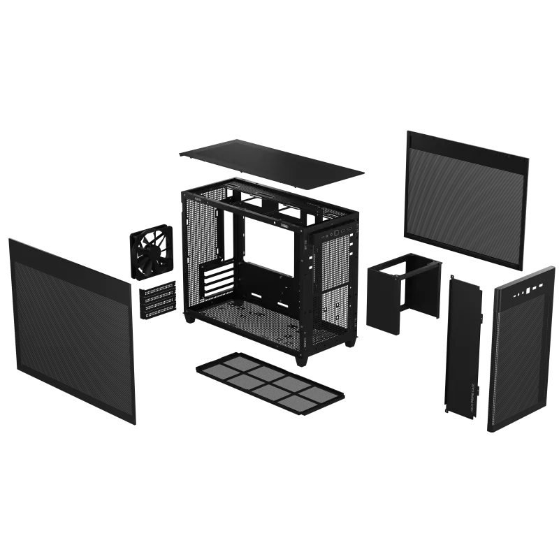 准过滤网面板:由超过 57,000 个精密加工的 1.5 毫米孔组成的网状设计增加了气流,并提供了一个引人注目的组件视图。