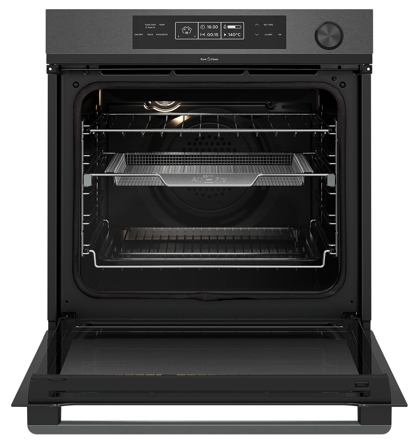 烤箱功能 风扇烤架,传统烘焙,披萨,烤架,AirFry,大型烤架,基础加热,Pyroclean,风扇烹饪,烤,解冻,风扇烘焙,快速烹饪,蒸汽辅助烹饪