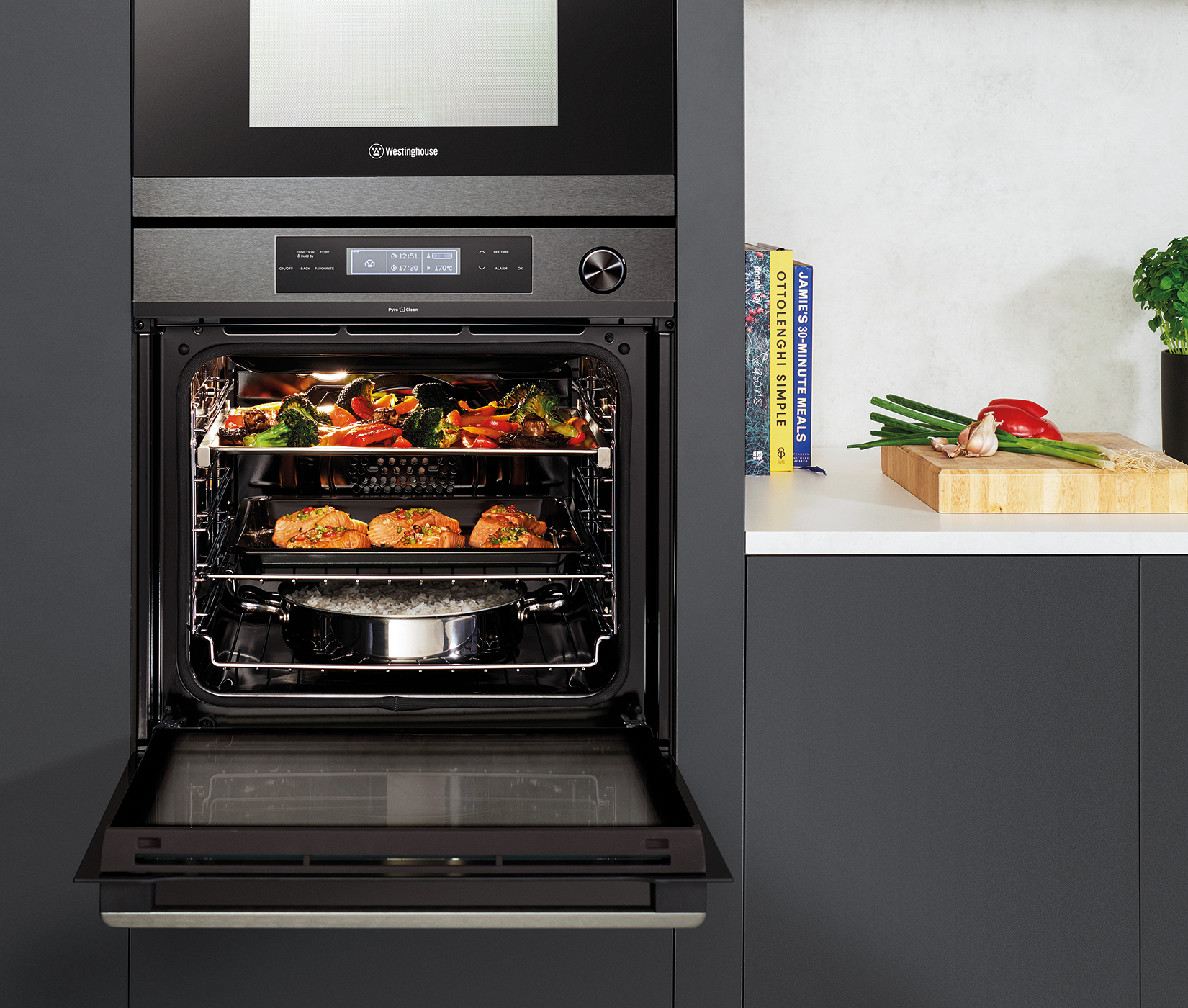自动清洁的烤箱自动清洁的烤箱 使用 Westinghouse,甚至清理工作也变得更加容易。选择一个 PyroClean 烤箱,只需按下一个按钮,您就可以让您的烤箱保持光亮和清洁。烤箱开启极高的温度,将油脂和污垢变成灰烬。您所需要做的就是擦去残留物。没有令人讨厌的化学物质,没有油腻的混乱,只是一个闪闪发光的干净烤箱,只需很少的努力。